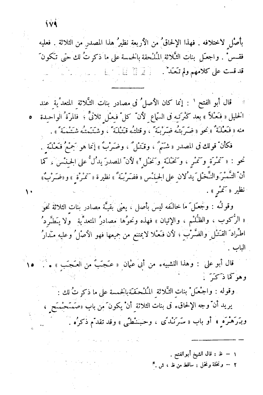 فكأن قولك في المصدر "شَتْم، وقتل، وضرب" إنما هو جمع فَعْلَة, نحو: "تَمْرَة وتَمْر، ونخلة ونخل"2؛ لأن المصدر يدل على الجنس، كما أن التمر والنخل يدلان على الجنس, "فضربة" نظيرة "تمرة" و"ضرب" نظير "تمر".
