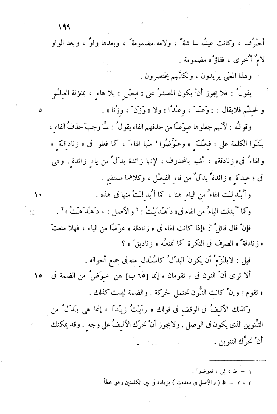 وقوله: لأنهم جعلوها عوضا من حذفهم الفاء, يقول: لما وجب حذف الفاء، بنوا الكلمة على "فِعْلَة" وعوّضوا1 منها الهاء، كما فعلوا في "زنادقة", والهاء في "زنادقة" أشبه بالمحذوف؛ لأنها زائدة بدل من ياء زائدة, وهي في "عدة" زائدة بدل من فاء الفعل، وكلاهما مستقيم.