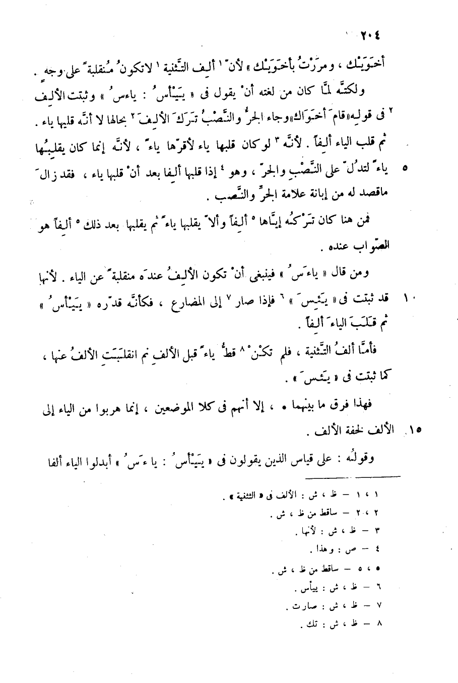 فأما ألف الثتنية، فلم تكن8 قط ياء قبل الألف, ثم انقلبت الألف عنها، كما ثبتت في "يئس".