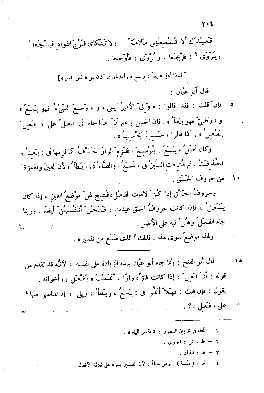 قال أبو الفتح: إنما جاء أبو عثمان بهذه الزيادة على نفسه؛ لأنه قد تقدم من قوله: أن "فعِل" إذا كانت فاؤه واوا، أتممت "يفعَل" وأخواته.