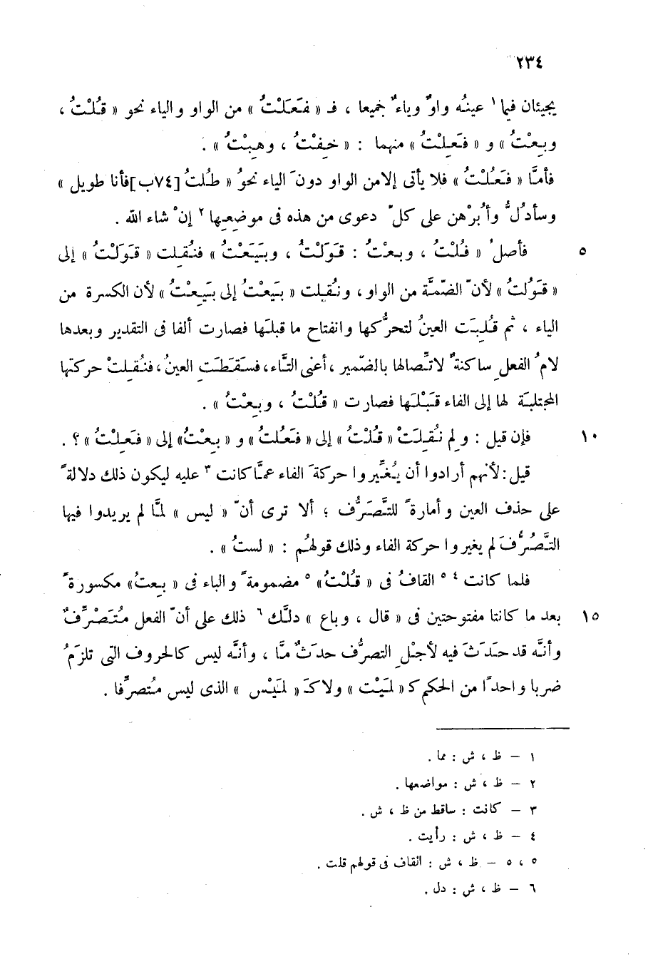 فلما كانت4 5 القاف في "قلت"5 مضمومة, والباء في "بعت" مكسورة بعدما كانتا مفتوحتين في "قال، وباع", دلّك6 ذلك على أن الفعل متصرف, وأنه قد حَدَثَ فيه لأجل التصرف حَدَثٌ ما، وأنه ليس كالحروف التي تلزم ضربا واحدا من الحكم كـ "ليت" ولا كـ "ليس" الذي ليس متصرفا.