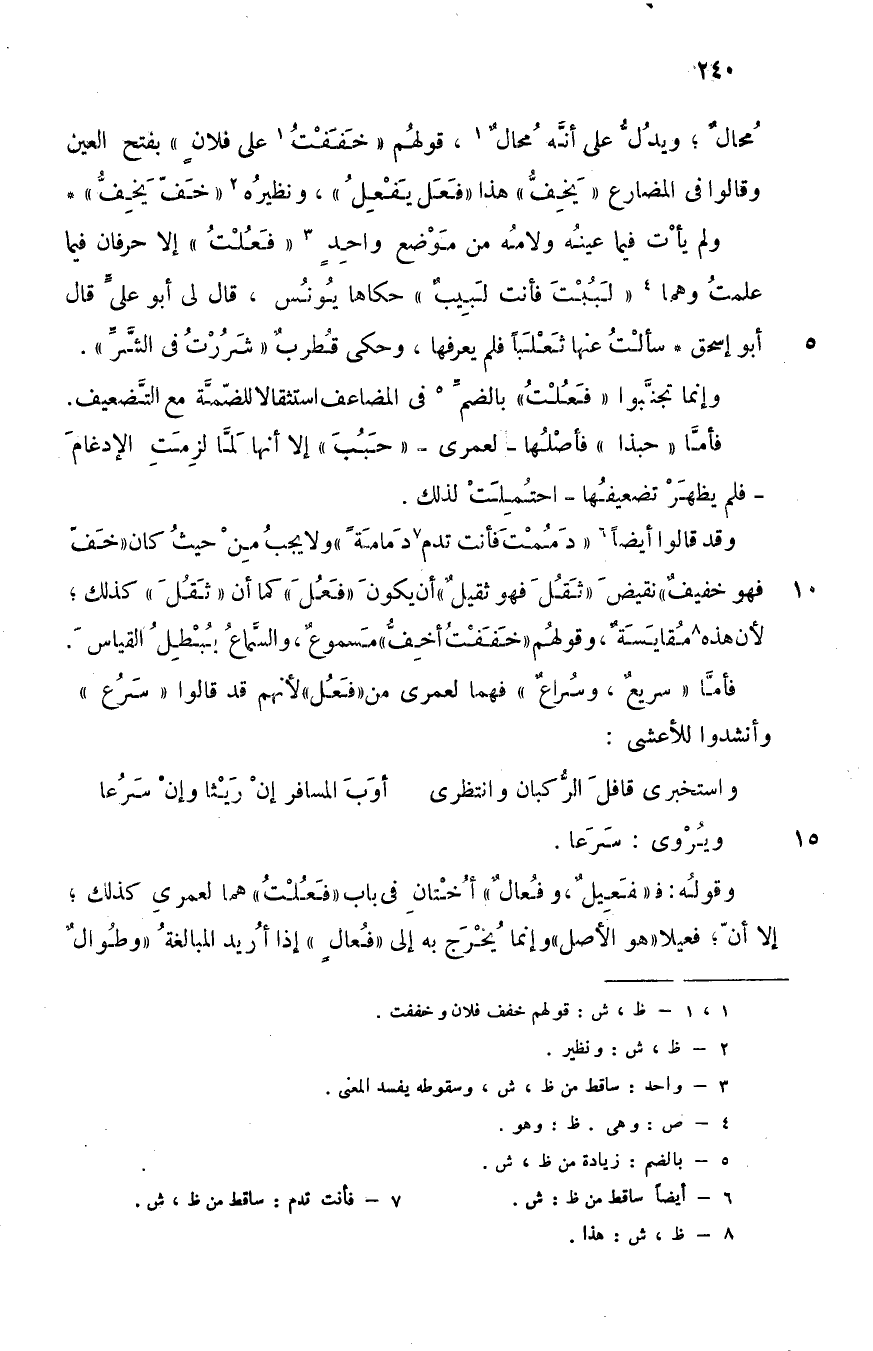 فأما "سريع، وسُرَاع" فهما لعمري من "فعُل"؛ لأنهم قد قالوا "سرُع", وأنشدوا للأعشى: