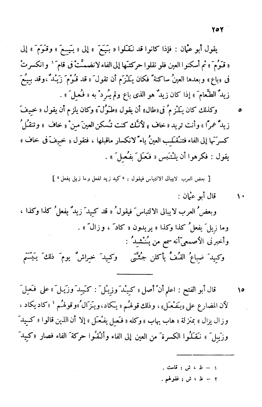 وبعض العرب لا يبالي الالتباس فيقول: "قد كيد زيد يفعل كذا وكذا, وما زيل يفعل كذا وكذا" يريدون " كاد, وزال".