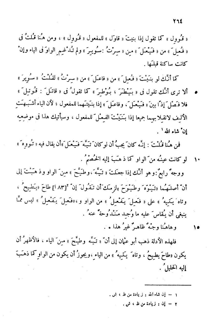 فلهذه الأدلة ذهب أبو عثمان إلى أن "تيه وطيح" من الياء، فالأظهر أن يكون "طاح يطيح، وتاه يتيه" من الياء، ويجوز أن يكون من الواو كما ذهب إليه الخليل.