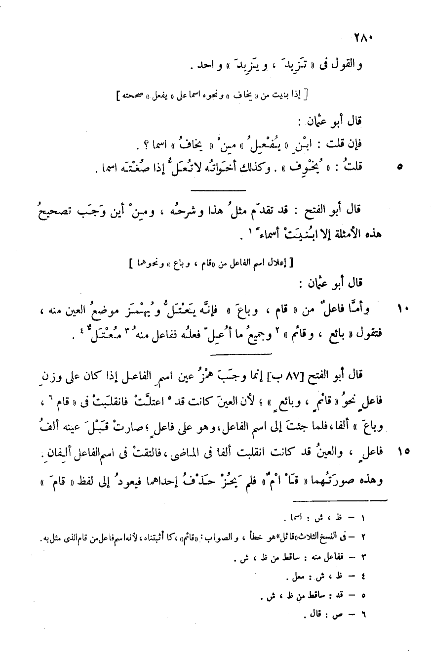 2 في النسخ الثلاث: "قائل" وهو خطأ، والصواب: "قائم" كما أثبتناه؛ لأنه اسم فاعل من قام الذي مثل به.