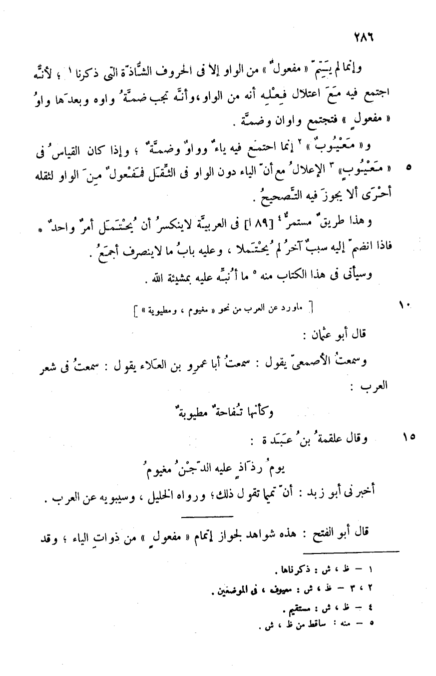 قال أبو الفتح: هذه شواهد لجواز إتمام "مفعول" من ذوات الياء، وقد