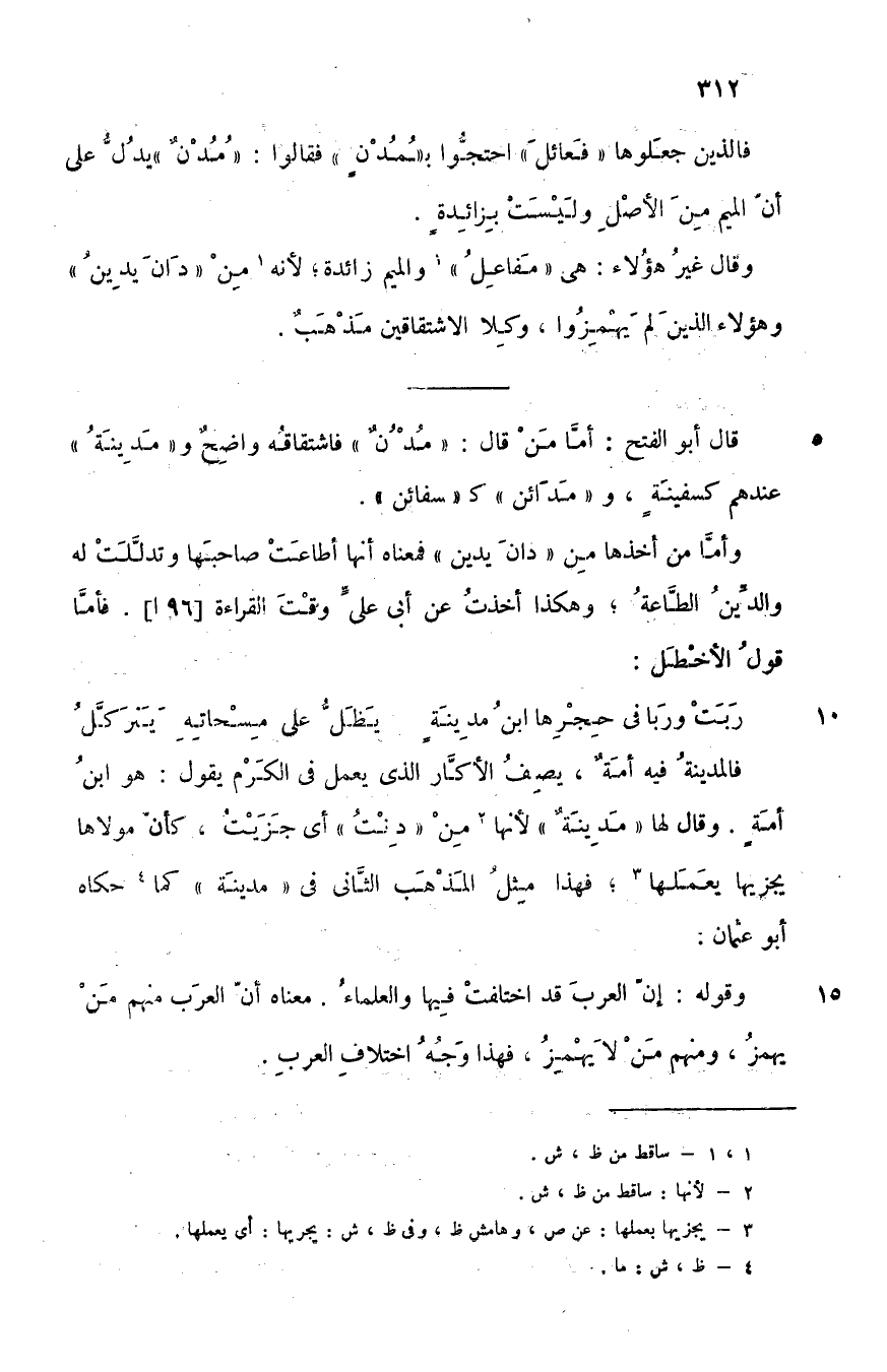 قال أبو الفتح: أما من قال: "مُدن" فاشتقاقه واضح و"مَدِينة" عندهم كسفينة, و"مدائن" كـ "سفائن".