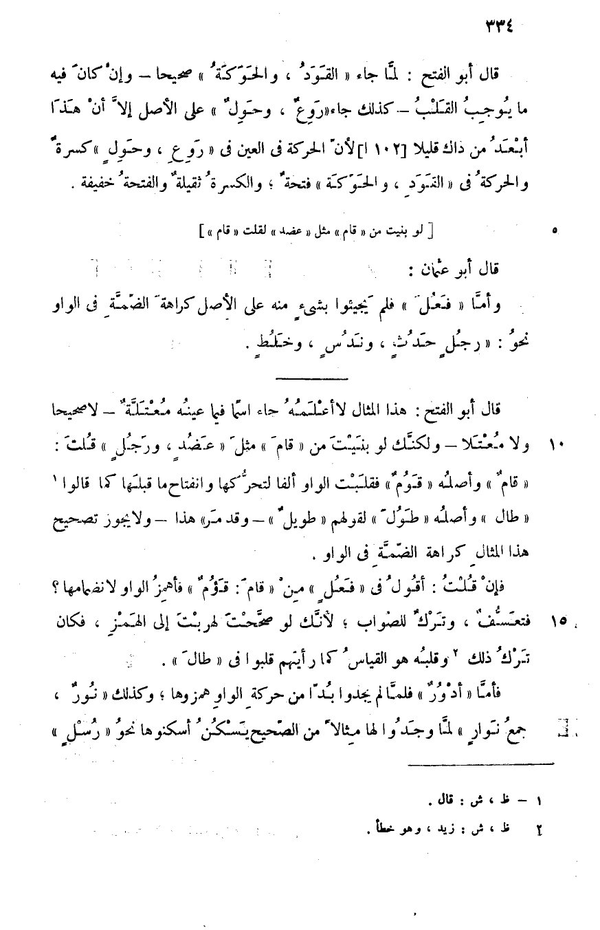 فإن قلت: أقول في "فَعُل" من "قام: قَؤُم" فأهمز الواو لانضمامها, فتعسّف، وترك للصواب؛ لأنك لو صحّحت لهربت إلى الهمز، فكان ترك ذلك2 وقلبه هو القياس كما رأيتهم قلبوا في "طال".