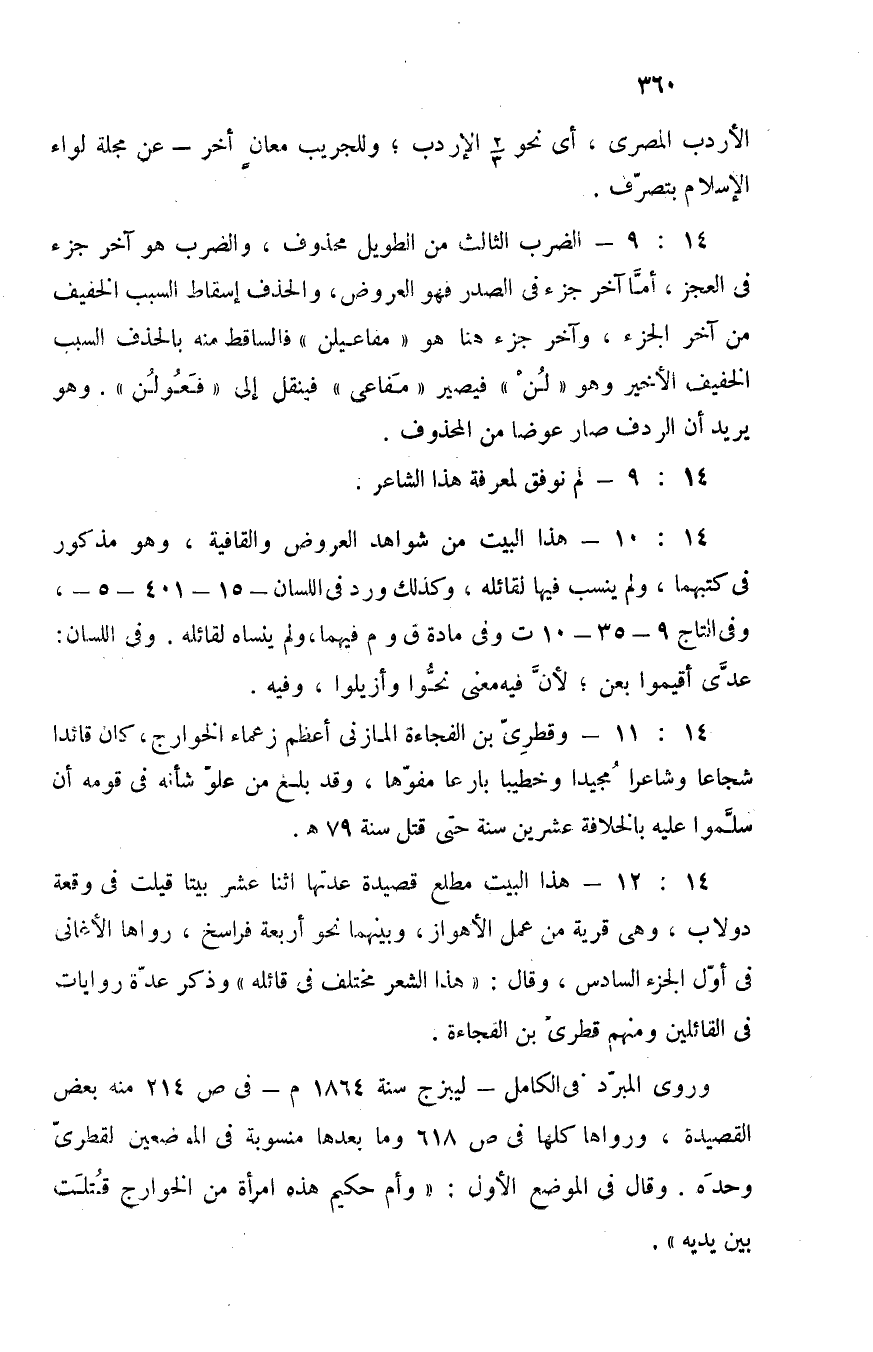 14: 12- هذا البيت مطلع قصيدة عدتها اثنا عشر بيتا قيلت في وقعة دولاب، وهي قرية من عمل الأهواز، وبينهما نحو أربعة فراسخ، رواها الأغاني في أول الجزء السادس، وقال: "هذا الشعر مختلف في قائله" وذكر عدة روايات في القائلين, ومنهم قطري بن الفجاءة.