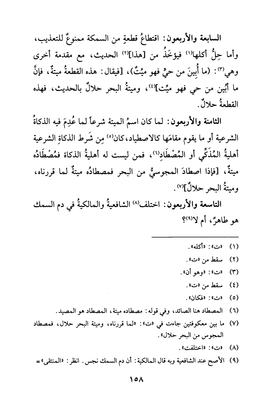 السابعة والأربعون: اقتطاعُ قطعةٍ من السمكة ممنوعٌ للتعذيب، وأما حِل أكلها (¬1) فيؤخَذُ من (هذا) (¬2) الحديث، مع مقدمة أخرى وهي (¬3):