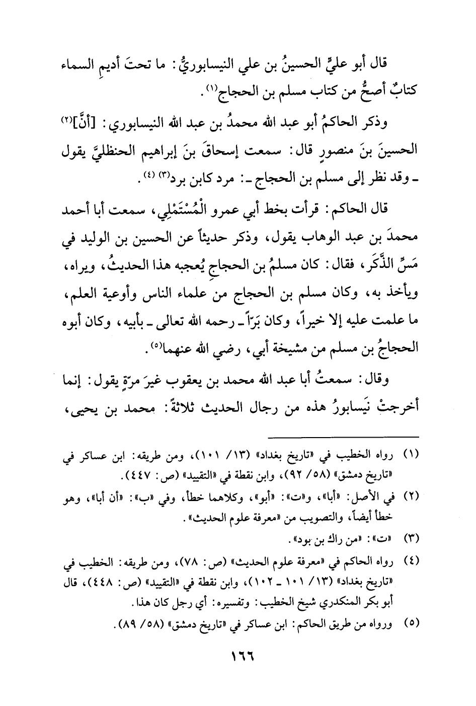 (¬4) رواه الحاكم في "معرفة علوم الحديث" (ص: 78)، ومن طريقه: الخطيب في "تاريخ بغداد" (13/ 101 - 102)، وابن نقطة في "التقييد" (ص: 448)، قال أبو بكر المنكدري شيخ الخطيب: وتفسيره: أي رجل كان هذا.