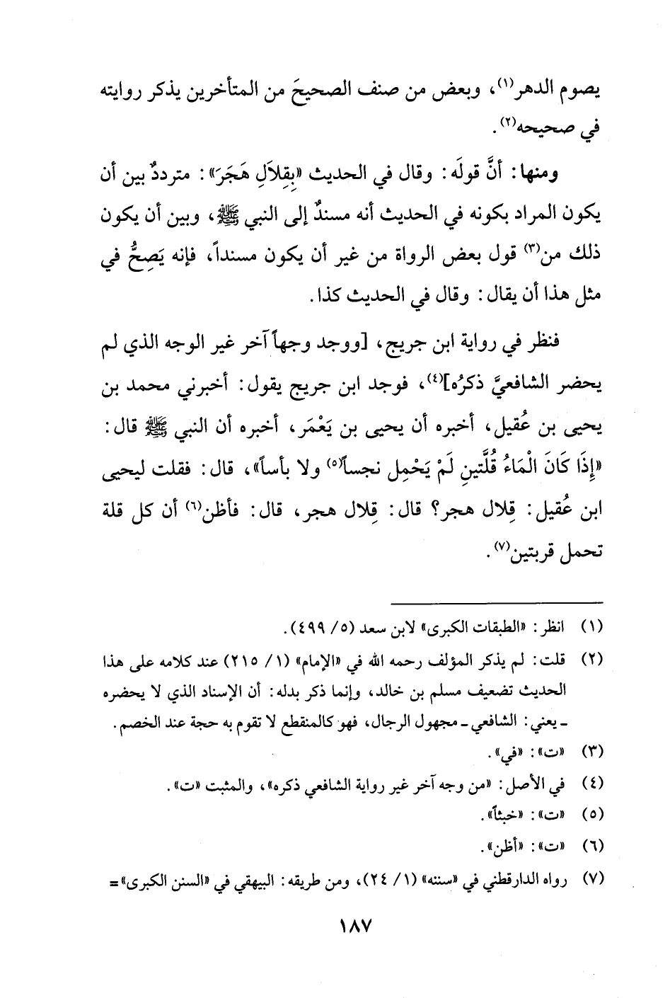 فنظر في رواية ابن جريج، [ووجد وجهاً آخر غير الوجه الذي لم يحضر الشافعيَّ ذكرُه] (¬4)، فوجد ابن جريج يقول: أخبرني محمد بن يحيى بن عُقيل، أخبره أن يحيى بن يَعْمَر، أخبره أن النبي - صلى الله عليه وسلم - قال: "إِذَا كَانَ المَاءُ قُلَّتينِ لَمْ يَحْمِل نجساً (¬5) ولا بأساً"، قال: فقلت ليحى ابن عُقيل: قِلال هجر؟ قال: قِلال هجر، قال: فأظن (¬6) أن كل قلة تحمل قربتين (¬7).