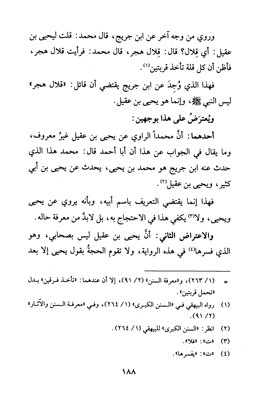 فهذا الذي وُجِدَ عن ابن جريج يقتضي أن قائل: "قلال هجر" ليس النبي - صلى الله عليه وسلم -، وإنما هو يحيى بن عقيل.