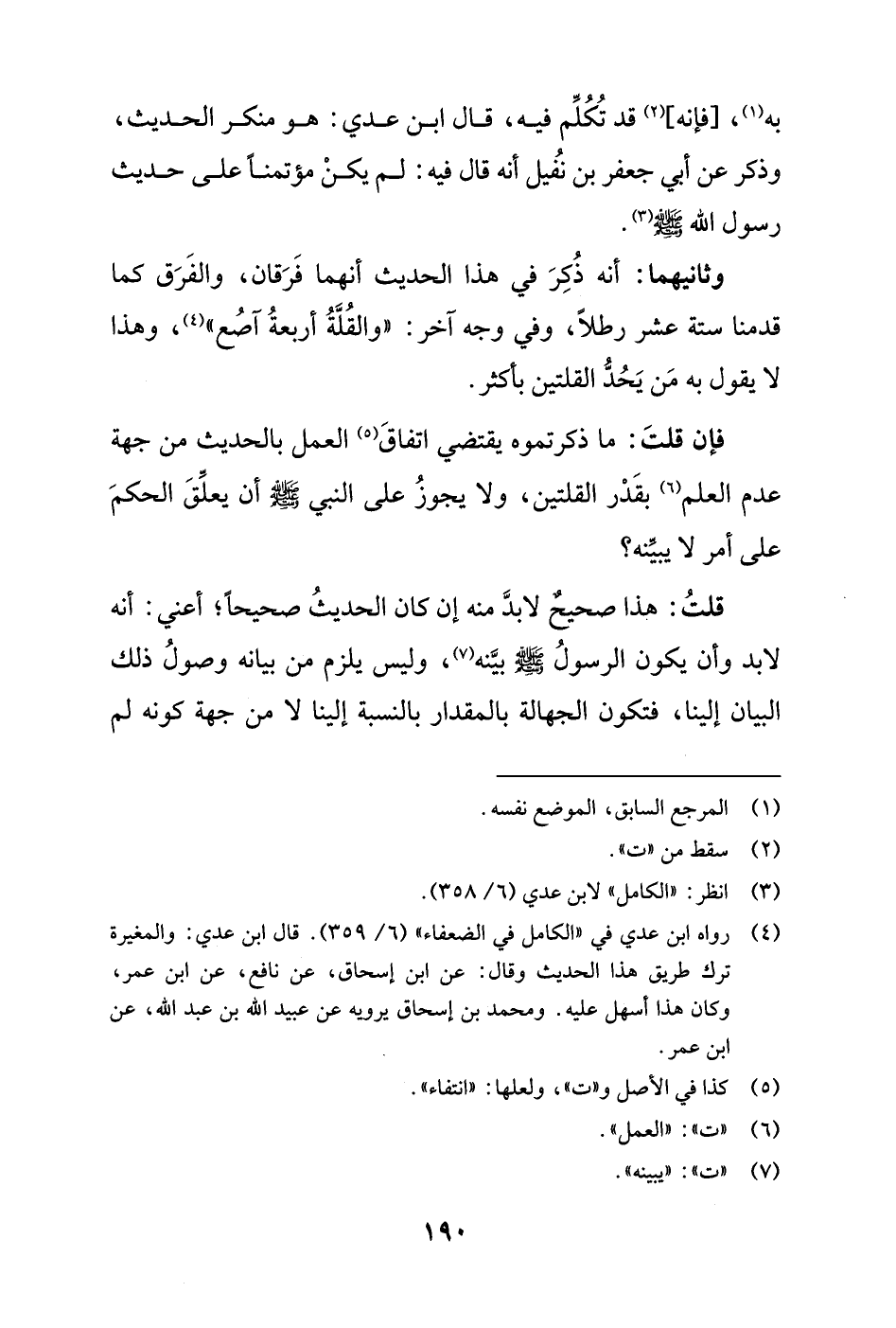 قلتُ: هذا صحيحٌ لابدَّ منه إن كان الحديثُ صحيحاً؛ أعني: أنه لابد وأن يكون الرسولُ - صلى الله عليه وسلم - بيَّنه (¬7)، وليس يلزم من بيانه وصولُ ذلك البيان إلينا، فتكون الجهالة بالمقدار بالنسبة إلينا لا من جهة كونه لم
