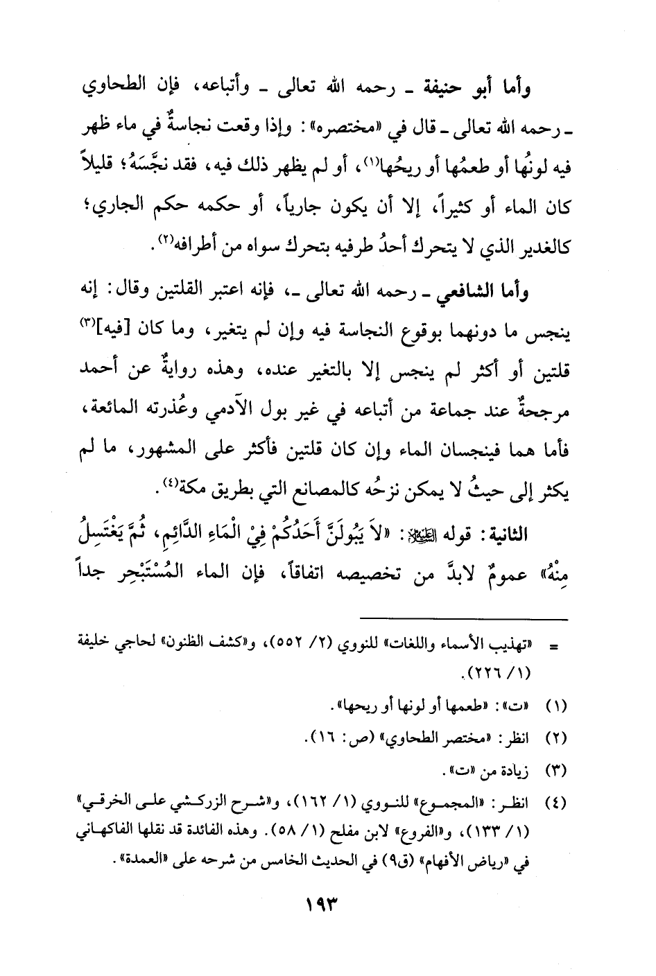 (¬4) انظر: "المجموع" للنووي (1/ 162)، و"شرح الزركشي على الخرقي" (1/ 133)، و"الفروع" لابن مفلح (1/ 58). وهذه الفائدة قد نقلها الفاكهاني في "رياض الأفهام" (ق 9) في الحديث الخامس من شرحه على "العمدة".