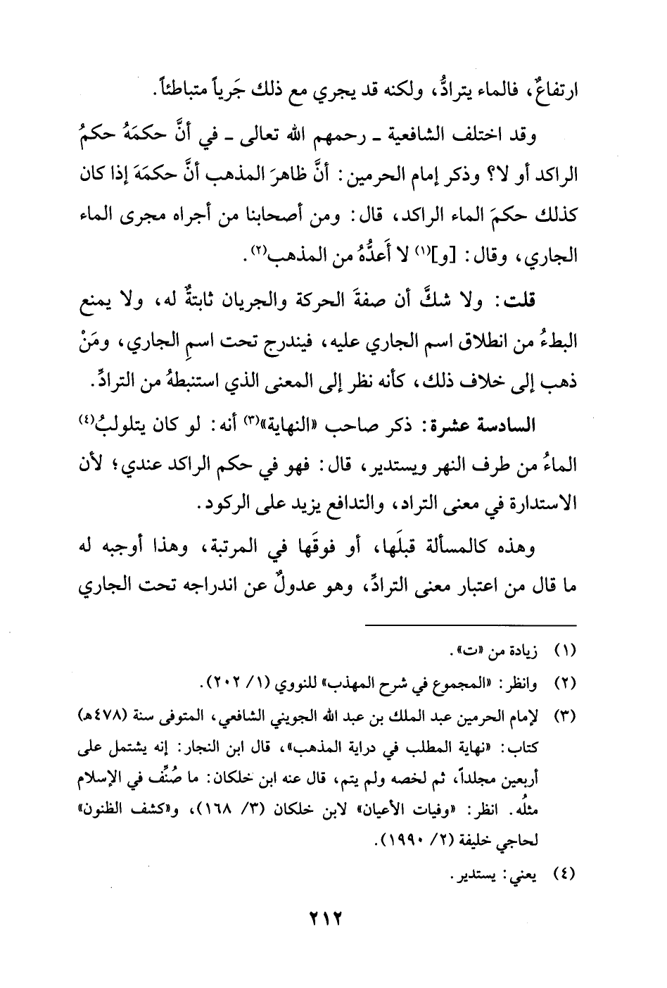 قلت: ولا شكَّ أن صفةَ الحركة والجريان ثابتةٌ له، ولا يمنع البطءُ من انطلاق اسم الجاري عليه، فيندرج تحت اسمِ الجاري، ومَنْ ذهب إلى خلاف ذلك، كأنه نظر إلى المعنى الَّذي استنبطهُ من الترادِّ.