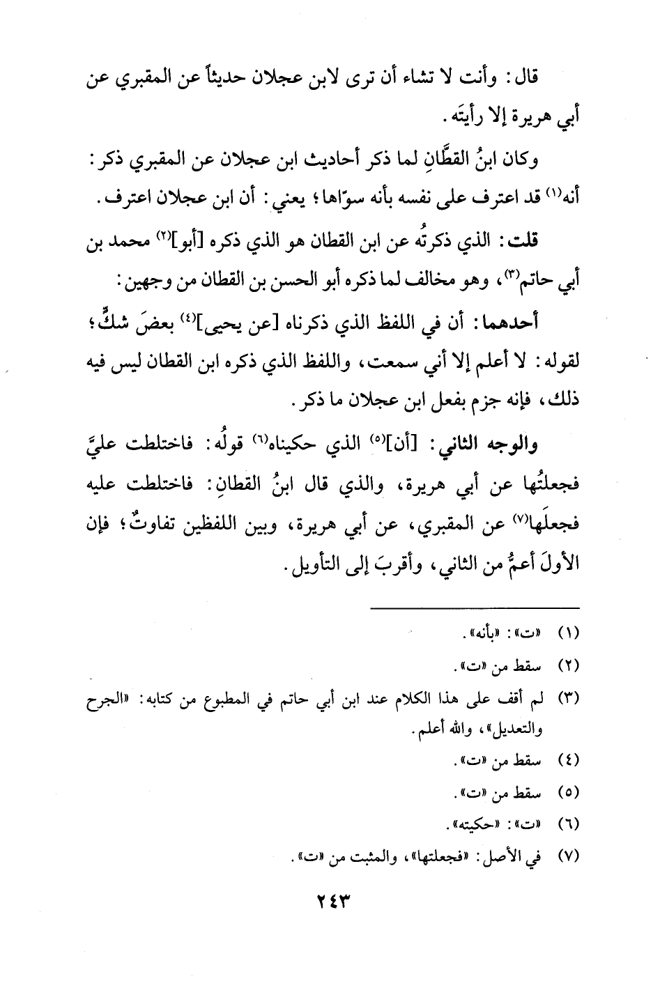 قلت: الَّذي ذكرتُه عن ابن القطان هو الَّذي ذكره [أبو] (¬2) محمد بن أبي حاتم (¬3)، وهو مخالف لما ذكره أبو الحسن بن القطان من وجهين: