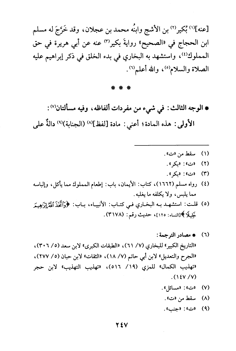 * الوجه الثالث: في شيء من مفردات ألفاظه، وفيه مسألتان (¬7):