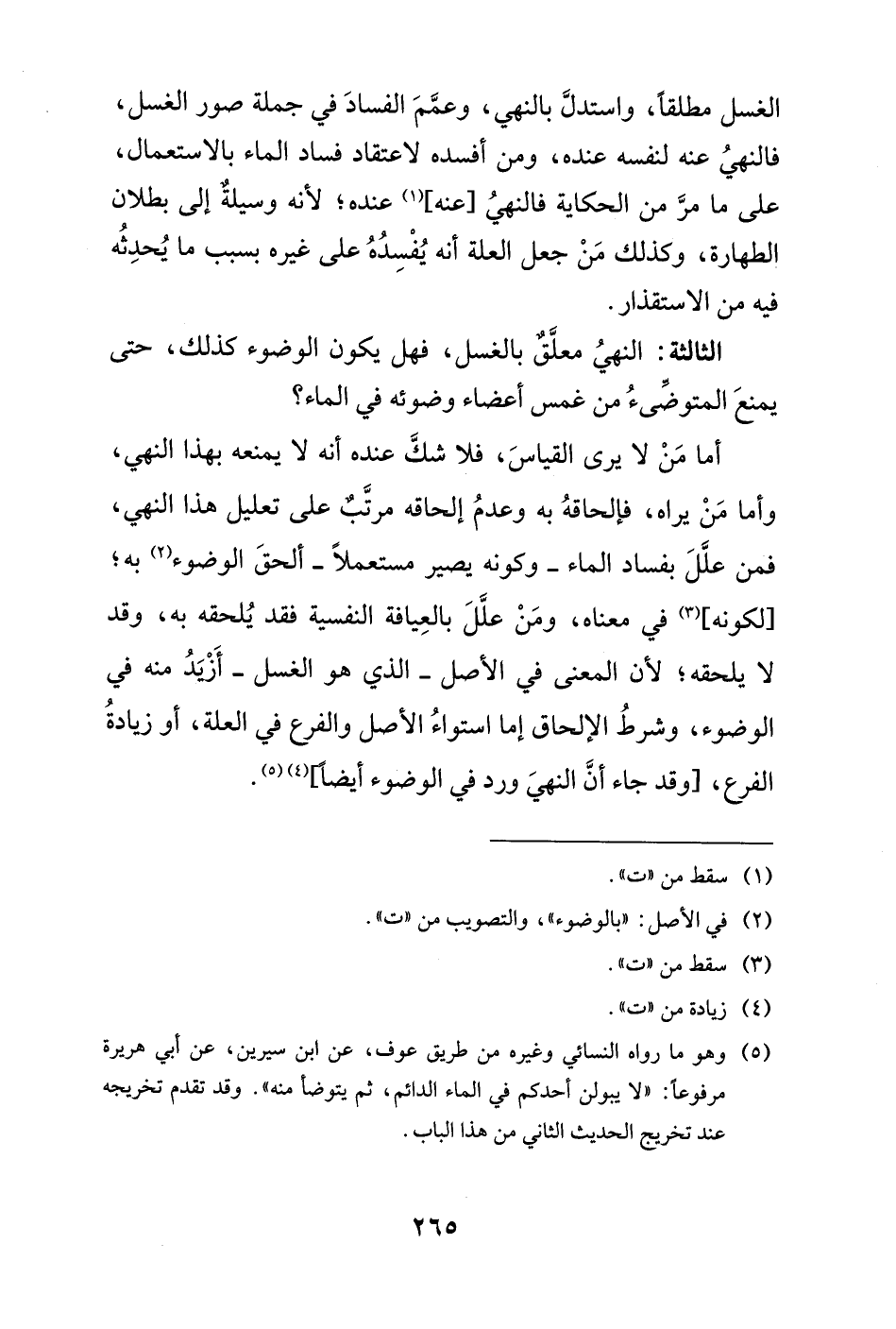 (¬5) وهو ما رواه النسائي وغيره من طريق عوف، عن ابن سيرين، عن أبي هريرة مرفوعًا: "لا يبولن أحدكم في الماء الدائم، ثم يتوضأ منه". وقد تقدم تخريجه عند تخريج الحديث الثاني من هذا الباب.