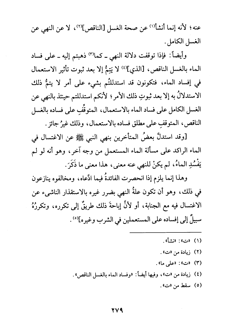 (¬4) زيادة من "ت"، وفيها أيضاً: "وفساد الماء بالغسل الناقص".