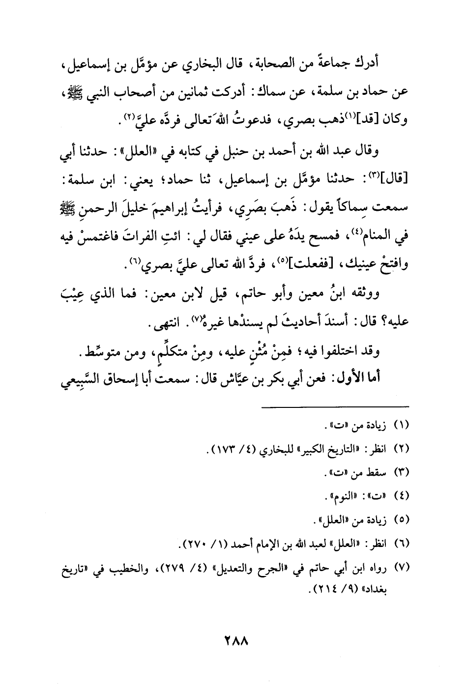 (¬6) انظر: "العلل" لعبد الله بن الإمام أحمد (1/ 270).