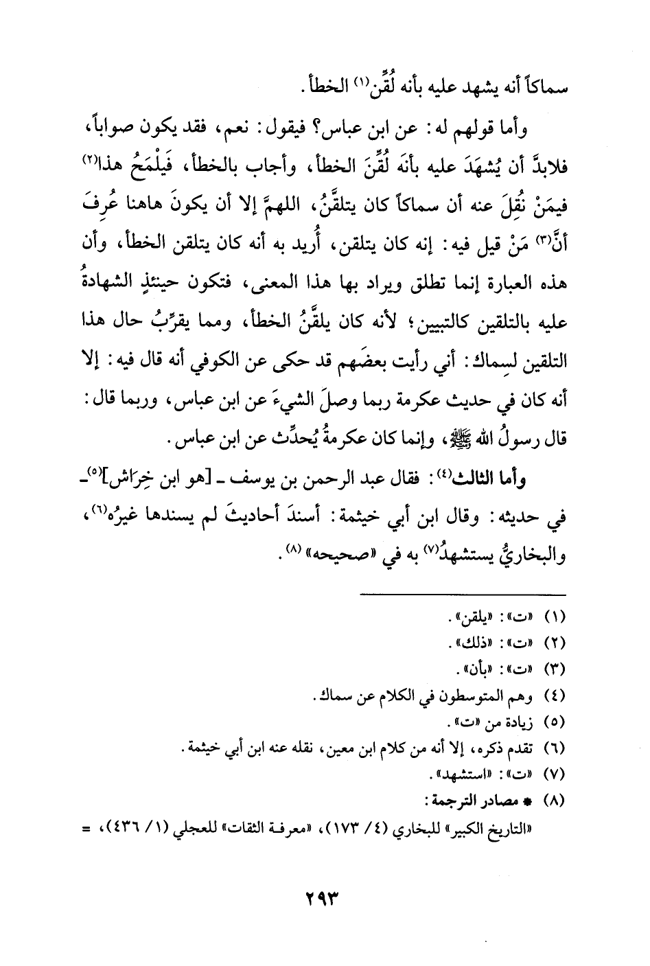 وأما قولهم له: عن ابن عباس؟ فيقول: نعم، فقد يكون صواباً، فلابدَّ أن يُشهَدَ عليه بأنَه لُقِّنَ الخطأ، وأجاب بالخطأ، فَيلْمَحُ هذا (¬2) فيمَنْ نُقِلَ عنه أن سماكاً كان يتلقَّنُ، اللهمَّ إلا أن يكونَ هاهنا عُرِفَ أنَّ (¬3) مَنْ قيل فيه: إنه كان يتلقن، أُريد به أنه كان يتلقن الخطأ، وأن هذه العبارة إنما تطلق ويراد بها هذا المعنى، فتكون حينئذٍ الشهادةُ عليه بالتلقين كالتبيين؛ لأنه كان يلقَّنُ الخطأ، ومما يقرِّبُ حال هذا التلقين لسِماك: أني رأيت بعضَهم قد حكى عن الكوفي أنه قال فيه: إلا أنه كان في حديث عكرمة ربما وصلَ الشيءَ عن ابن عباس، وربما قال: قال رسولُ الله - صلى الله عليه وسلم -، وإنما كان عكرمةُ يُحدِّث عن ابن عباس.