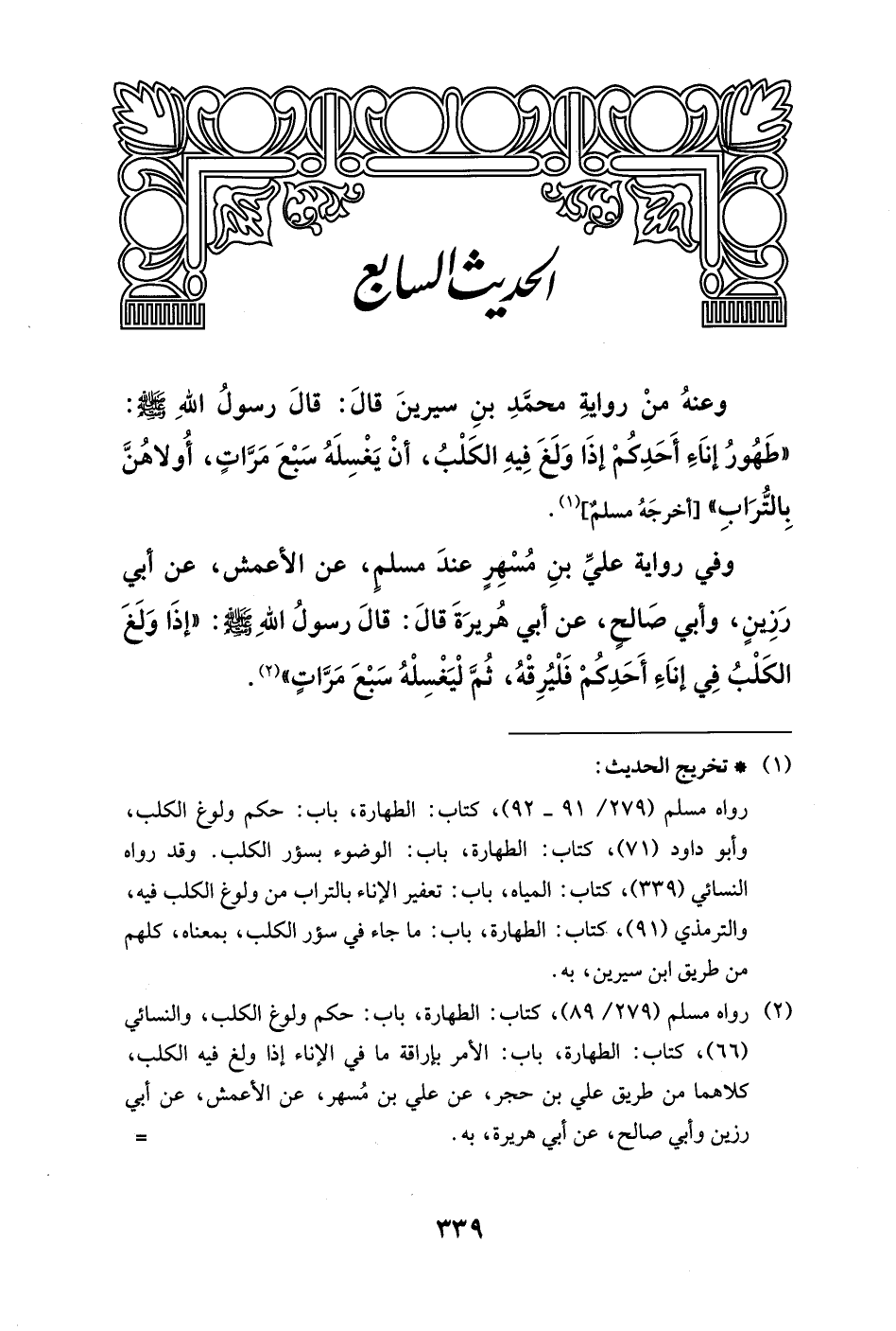 (¬2) رواه مسلم (279/ 89)، كتاب: الطهارة، باب: حكم ولوغ الكلب، والنسائي (66)، كتاب: الطهارة، باب: الأمر بإراقة ما في الإناء إذا ولغ فيه الكلب، كلاهما من طريق علي بن حجر، عن علي بن مُسهر، عن الأعمش، عن أبي رزين وأبي صالح، عن أبي هريرة، به. =