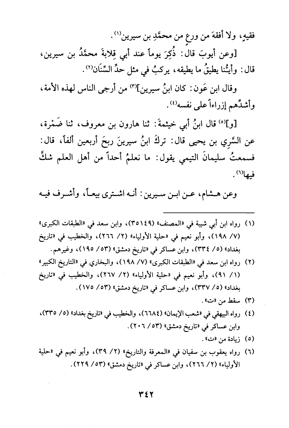 (¬2) رواه ابن سعد في "الطبقات الكبرى" (7/ 198)، والبخاري في "التاريخ الكبير" (1/ 91)، وأبو نعيم في "حلية الأولياء" (2/ 267)، والخطيب في "تاريخ بغداد" (5/ 337)، وابن عساكر في "تاريخ دمشق" (53/ 175).