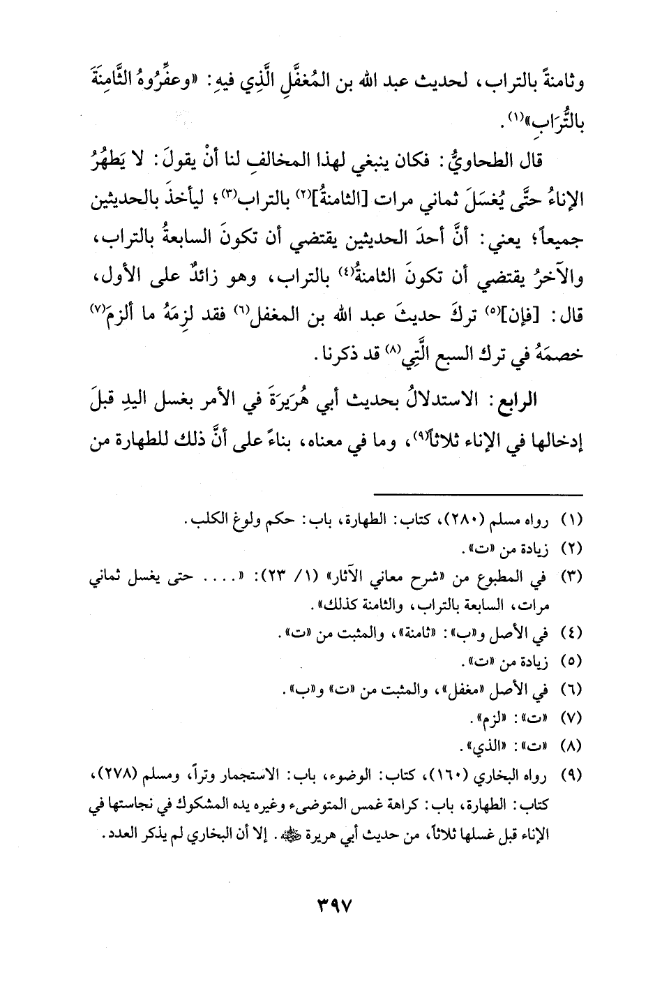 (¬3) في المطبوع من "شرح معاني الآثار" (1/ 23): " ... . حتى يغسل ثماني مرات، السابعة بالتراب، والثامنة كذلك".