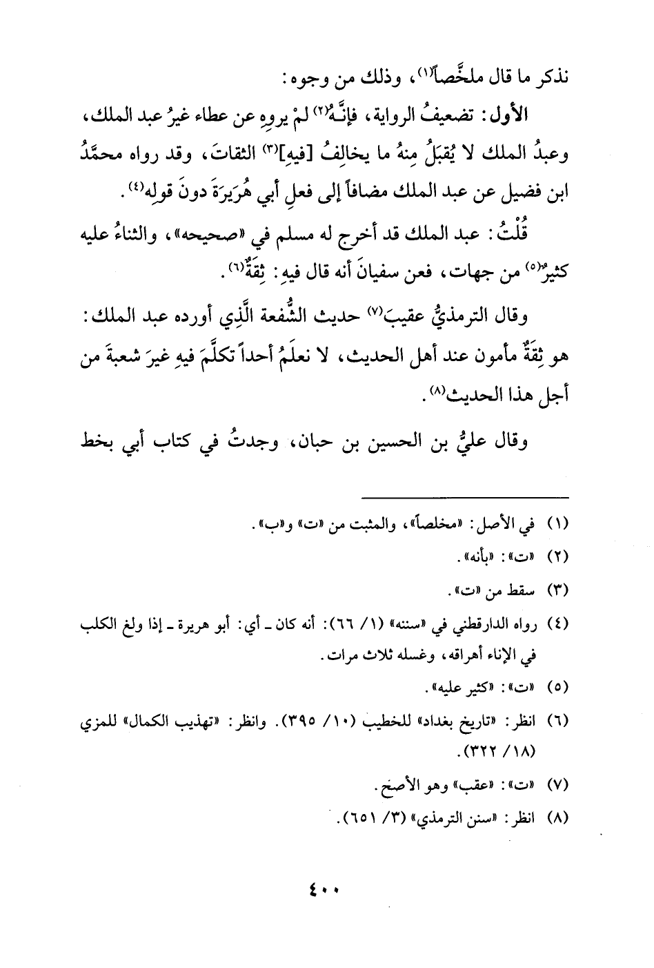 (¬6) انظر: "تاريخ بغداد" للخطيب (10/ 395). وانظر: "تهذيب الكمال" للمزي (18/ 322).