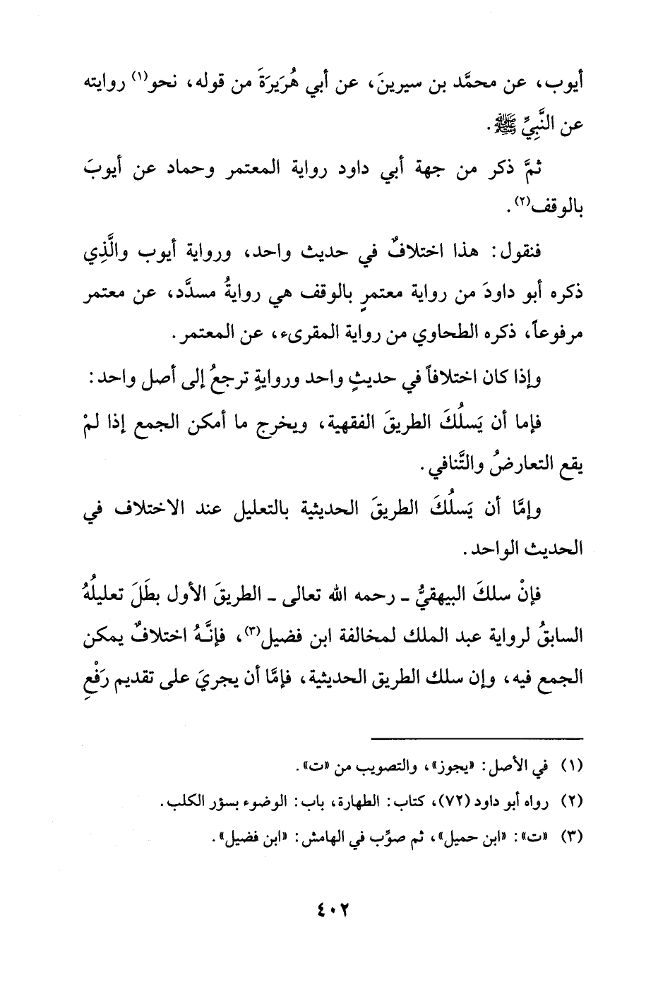 وإمَّا أن يَسلُكَ الطريقَ الحديثية بالتعليل عند الاختلاف في الحديث الواحد.