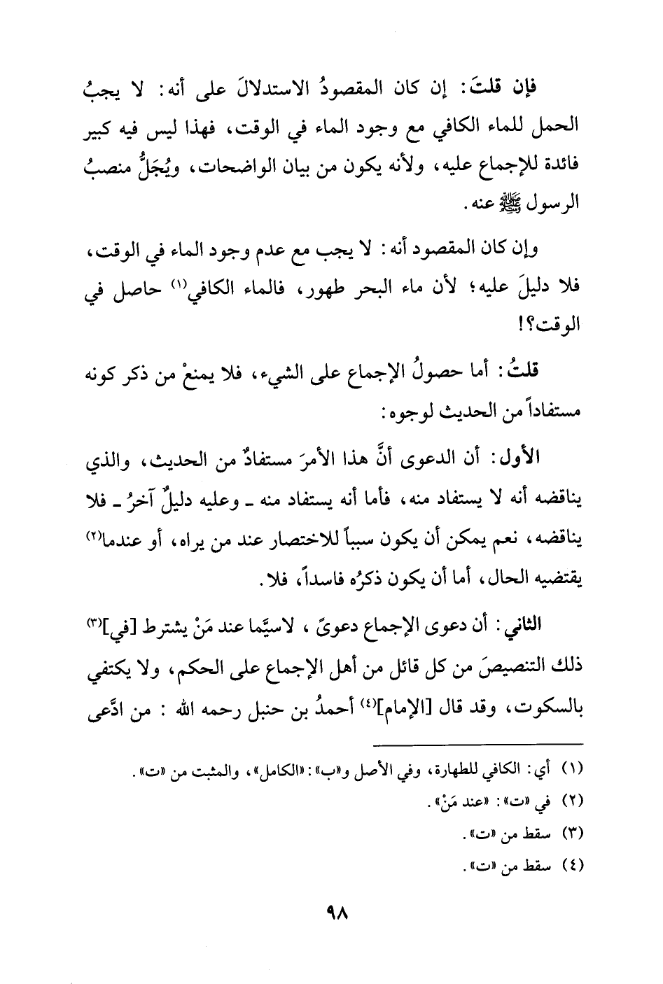 (¬1) أي: الكافي للطهارة، وفي الأصل و"ب": "الكامل"، والمثبت من "ت".
