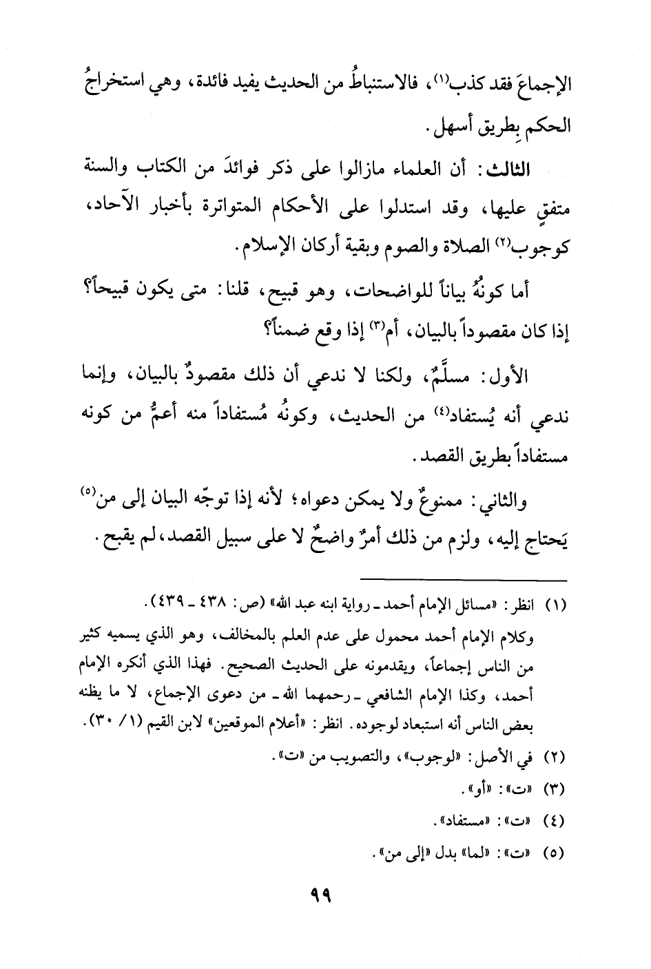 الثالث: أن العلماء مازالوا على ذكر فوائدَ من الكتاب والسنة متفقٍ عليها، وقد استدلوا على الأحكام المتواترة بأخبار الآحاد، كوجوب (¬2) الصلاة والصوم وبقية أركان الإسلام.