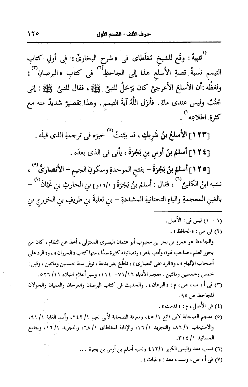 125- أسلم بن بجرة بفتح الموحدة وسكون الجيم، الأَنصارِيّ.