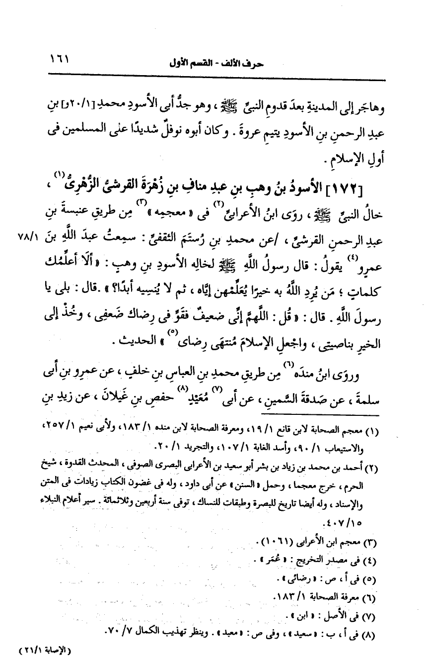 172- الأَسود بن وهب بن عبد مناف بن زهرة، القُرشِيّ الزُّهْرِيّ.