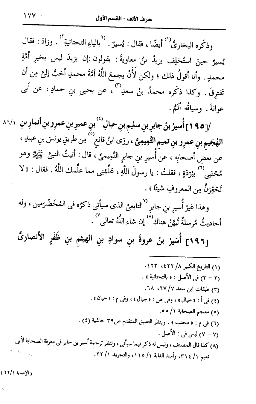 وهذا غير أسير بن جابر التابعي الذي سيأتي ذكره في المخضرمين وله أحاديث مرسلة تبين هناك إن شاء الله تعالى.
