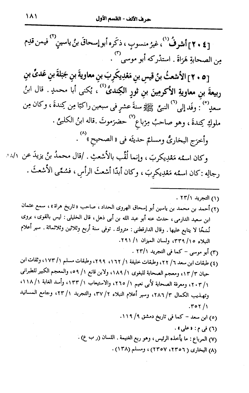 205- الأشعث بن قيس بن مَعدِي كَرِب بن معاوية بن جبلة بن عَدِيّ بن ربيعة بن معاوية الأكرمين بن ثور الكندي.