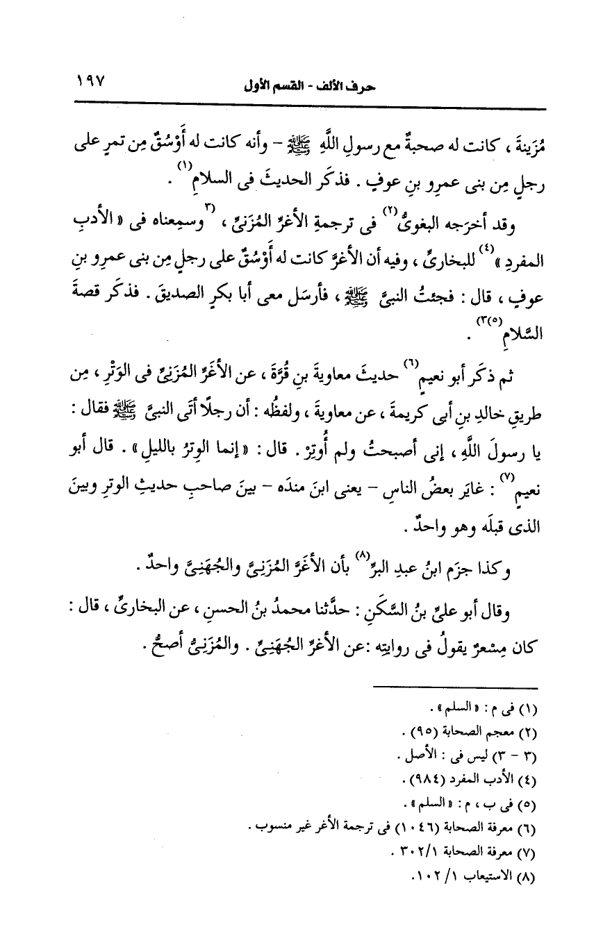 وكذا جزم ابن عَبد البَرِّ بان الأغر المزني والجهني واحد.