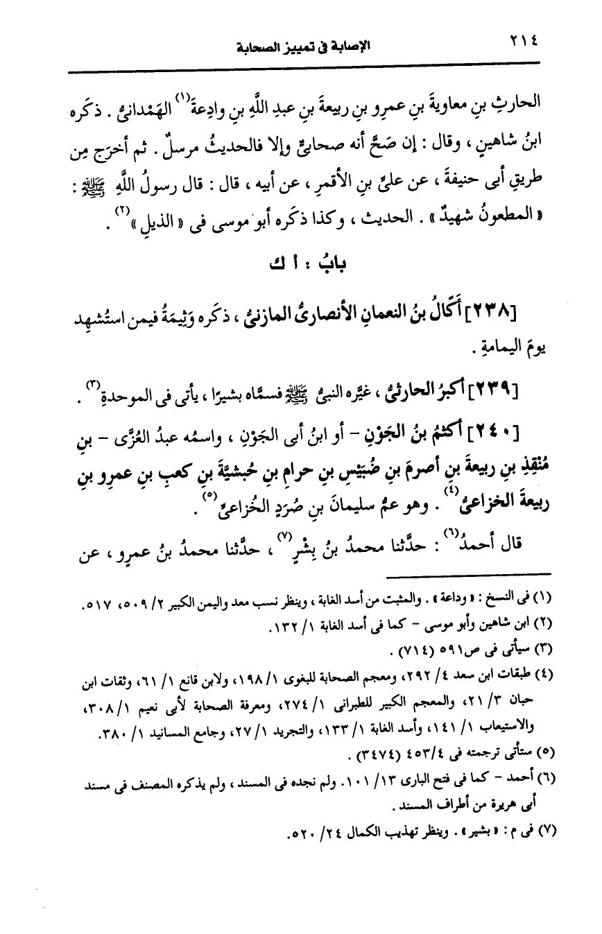 239- أكبر، الحارِثيّ غيره النَّبيّ صَلى الله عَلَيه وسَلم فسماه بشيرا.
