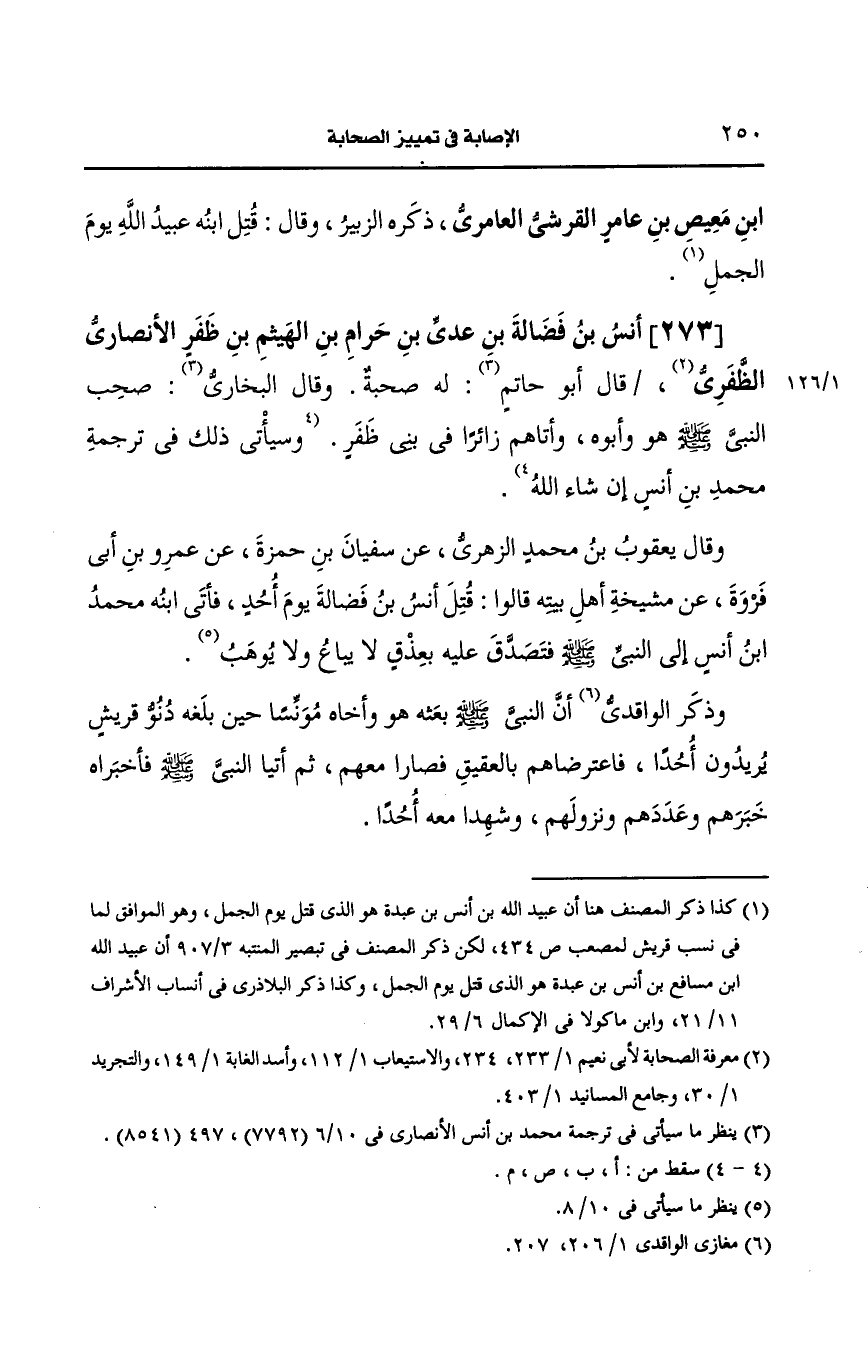 273- أنس بن فضالة بن عَدِيّ بن حرام بن الهتيم بن ظفر، الأَنصارِيّ الظفري بن أَبو حاتم.