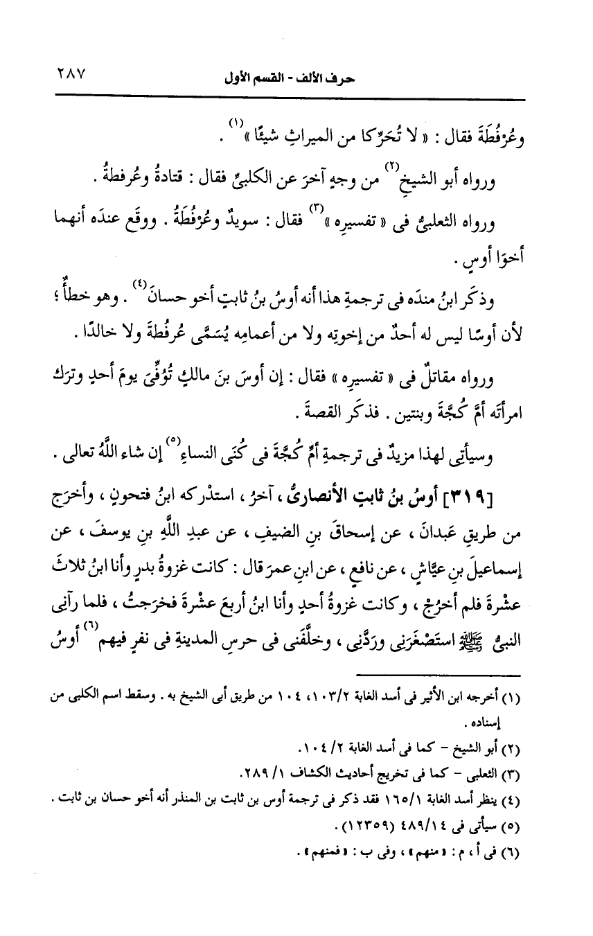 319- أوس بن ثابت، الأَنصارِيّ آخر.