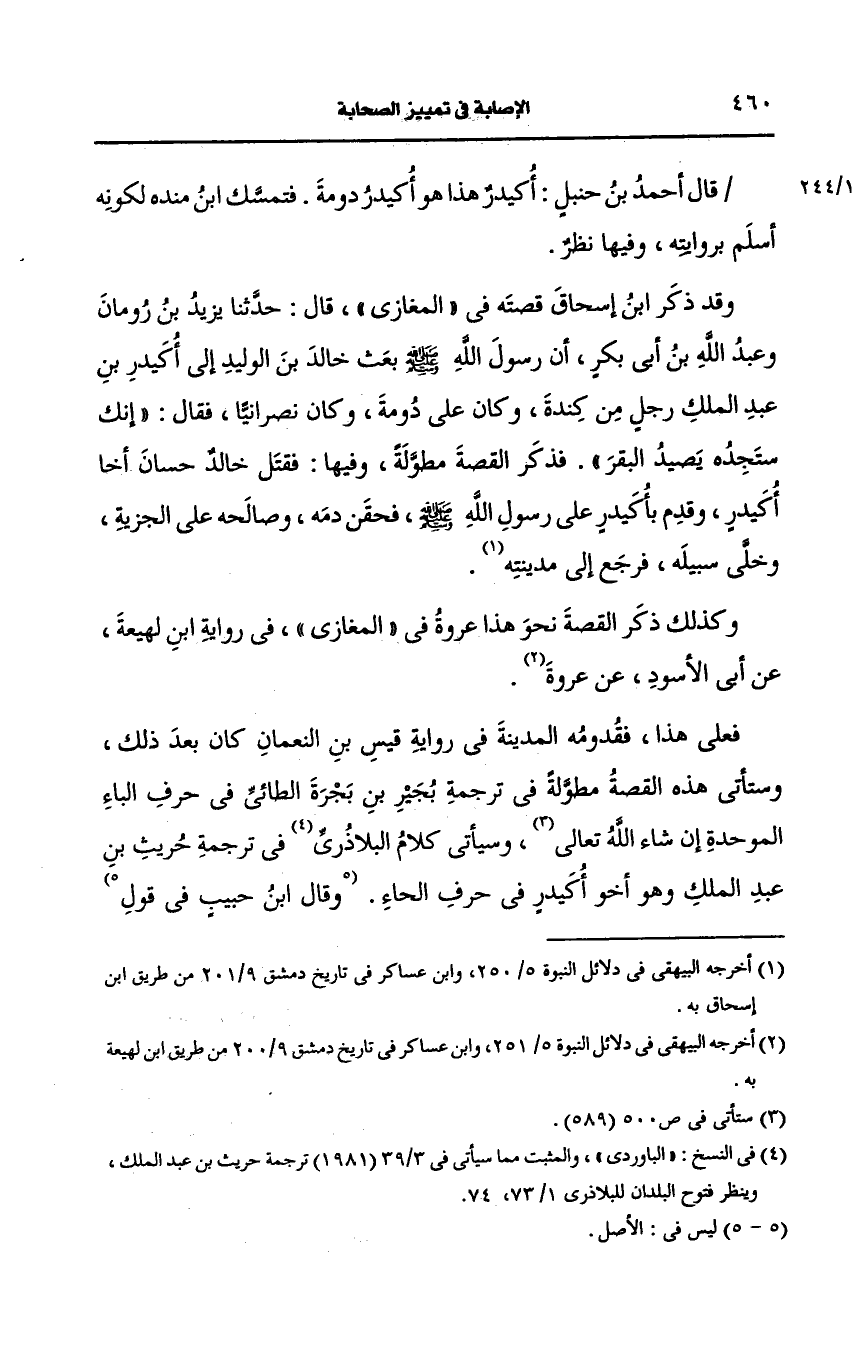 وسيأتي كلام الباوردي في ترجمة حريث بن عبد الملك وهو أخو أكيدر في حرف الحاء.