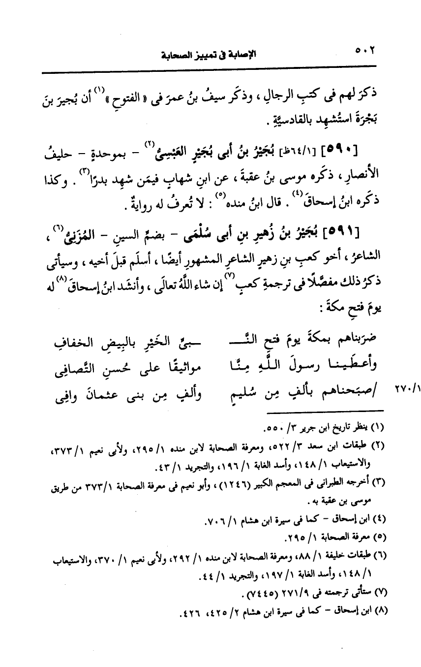 591- بجير بن زهير بن أبي سلمى بضم السين المزني الشاعر أخو كعب بن زهير الشاعر المشهور أيضًا أسلم قبل أخيه.