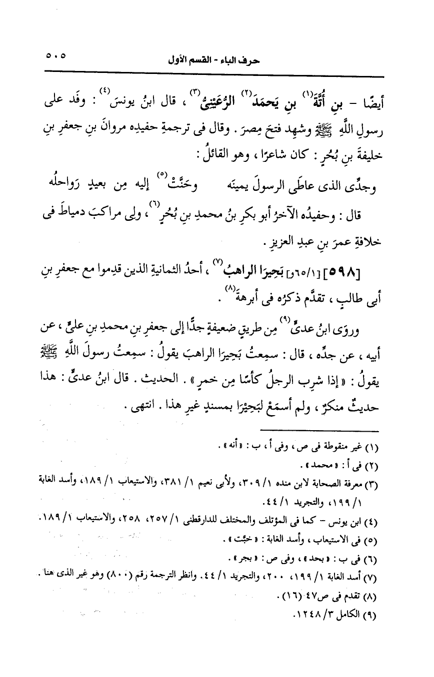 598- بحير الراهب أحد الثمانية الذين قدموا مع جعفر بن أبي طالب.