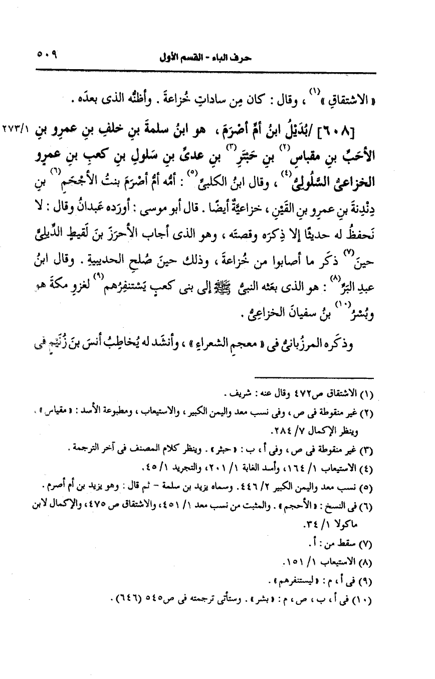 608- بديل بن أم أصرم، هو ابن سلمة بن خلف بن عَمرو بن الأحب بن مقباس بن حبتر بن عَدِيّ بن سلول بن كعب بن عَمرو الخُزاعيّ السلولي.