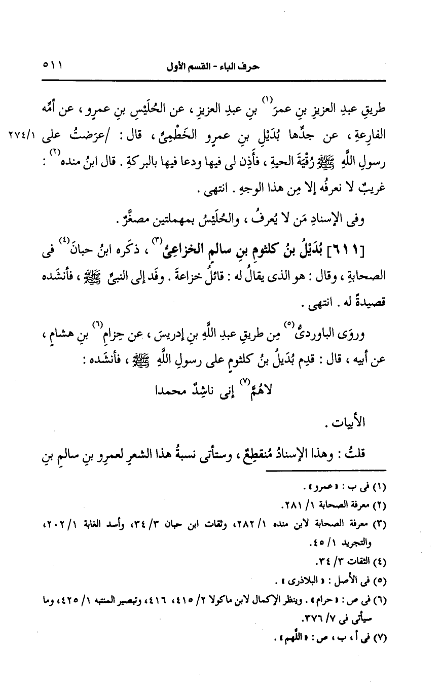 611- بديل بن كلثوم بن سالم الخُزاعيّ.