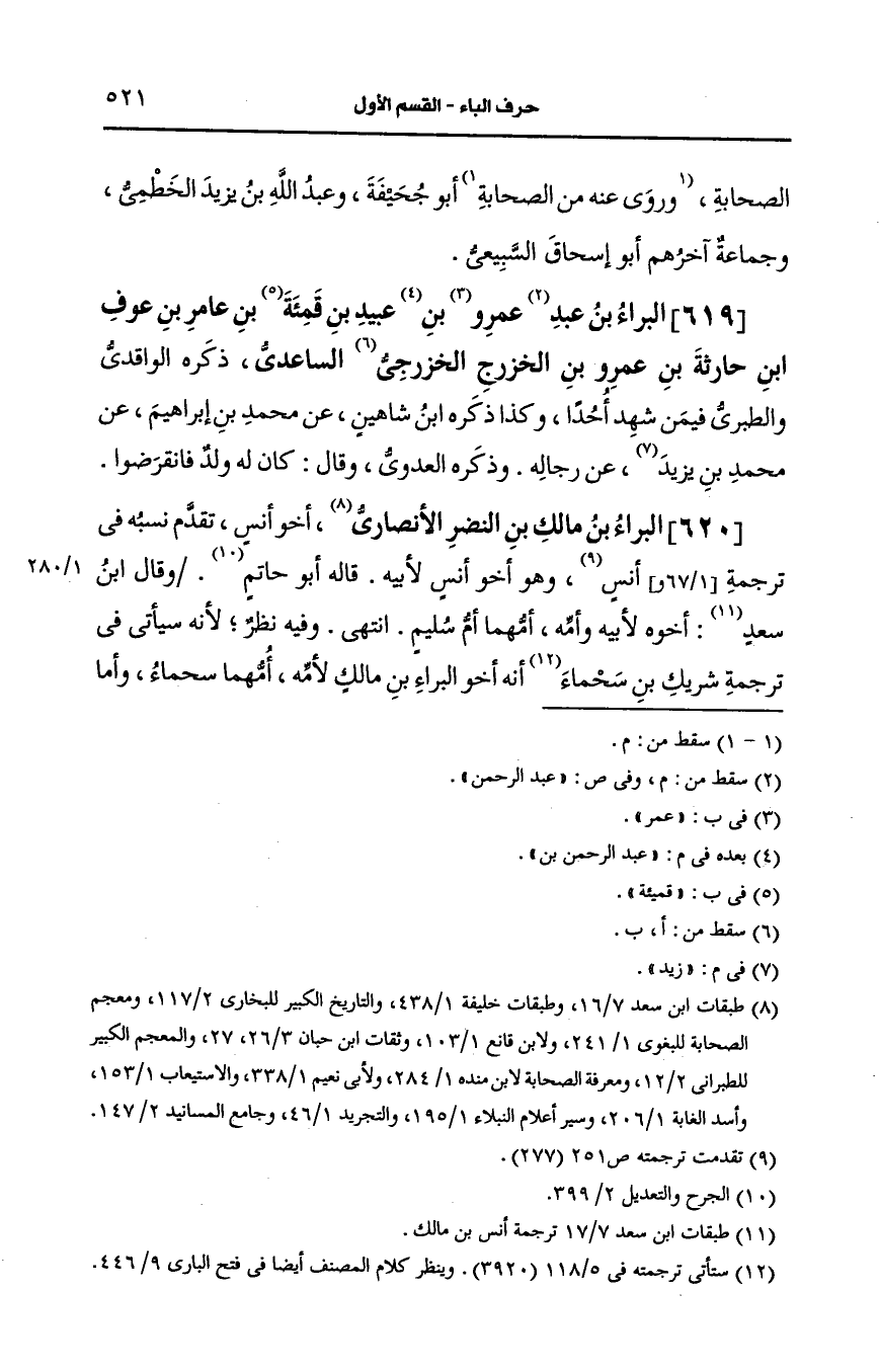 619- البراء بن عَمرو بن عبد الرحمن بن عبيد بن قمئة بن عامر بن عوف بن حارثة بن عَمرو بن الخزرج الخزرجي الساعدي.