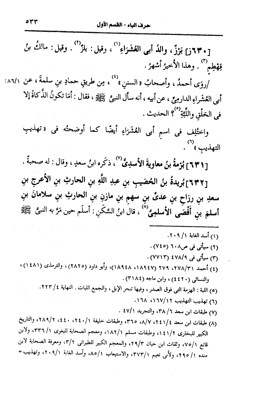 630- (ز) برز والد أبي العشراء وقيل بلز وقيل مالك بن قهطم وهذا الأخير أشهر.