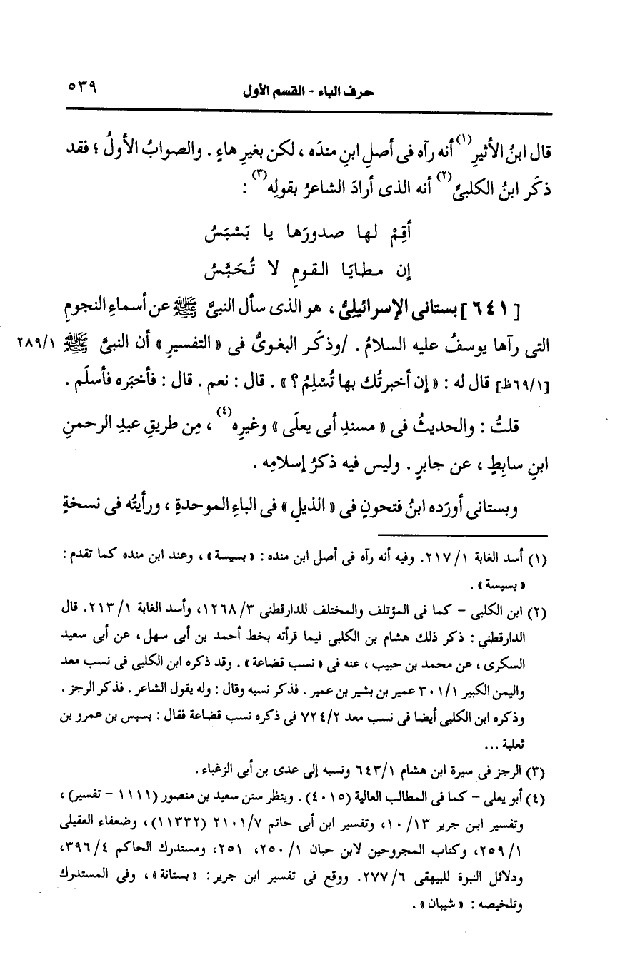 641- (ز) بستاني الإسرائيلي هو الذي سأل النَّبيّ صَلى الله عَلَيه وسَلم، عَن أسماء النجوم التي رآها يوسف عليه السلام.