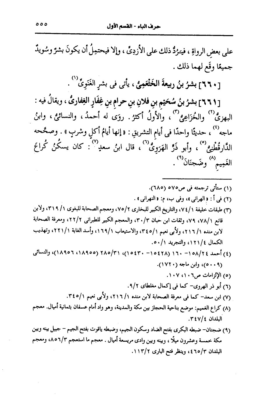 661- بشر بن سحيم بن فلان بن حرام بن غفار الغفاري، ويُقال: فيه النهراني والخزاعي والأول أكثر.